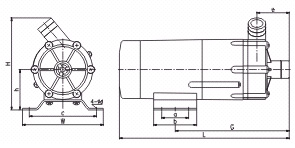 【MP型塑料微型磁力驅(qū)動(dòng)循環(huán)泵】安裝尺寸圖: