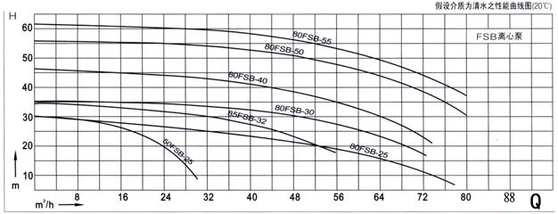 【FSB型氟塑料合金離心泵】性能曲線圖:
