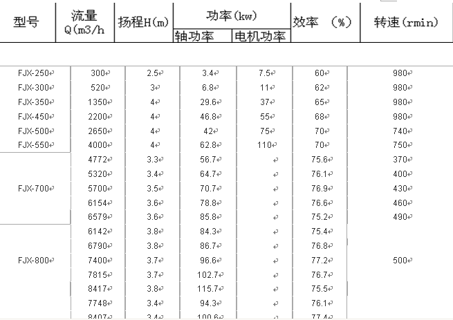 強制循環(huán)軸流泵FJX型性能參數(shù):