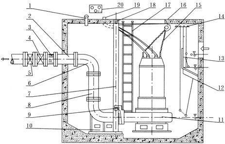 (5)電泵潛入水中時(shí),應(yīng)垂直起吊,不允許橫放著地,更不能陷入污泥中。停止使用時(shí)應(yīng)將電泵吊起清洗干凈, 置于干燥處,并注意防凍。