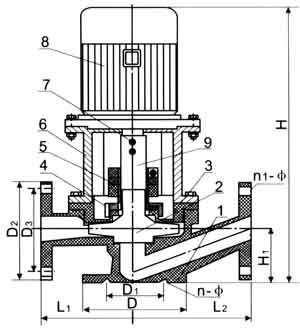直聯(lián)式管道泵的拆卸順序:拆除托架與泵體連接的八顆螺栓(有前泵蓋的還需拆除前泵蓋與泵體連接的八顆螺栓)取下泵殼(前泵蓋拆除葉輪軸與軸套連接的一顆不銹鋼緊固螺釘,葉輪軸反相轉(zhuǎn)至與電機(jī)軸脫開;松開機(jī)封動(dòng)環(huán)上兩顆不銹鋼螺栓,取下機(jī)封動(dòng)環(huán);取出葉輪,拆除靜環(huán)壓蓋拆卸完畢。