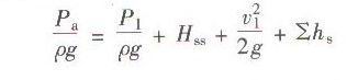 —分別為吸水池水面大氣壓與1-1斷面處的壓力(以Mh2o 表):H—吸水地形高度(也即安裝高度)(m):∑h—自吸水管進口至1-1斷面間的全部水頭損失之和(m)。(2)對吸水池水面及葉片入口稍前處0-0斷面(圖2-68中壓力線上0點的位置)列能量方程式,得: