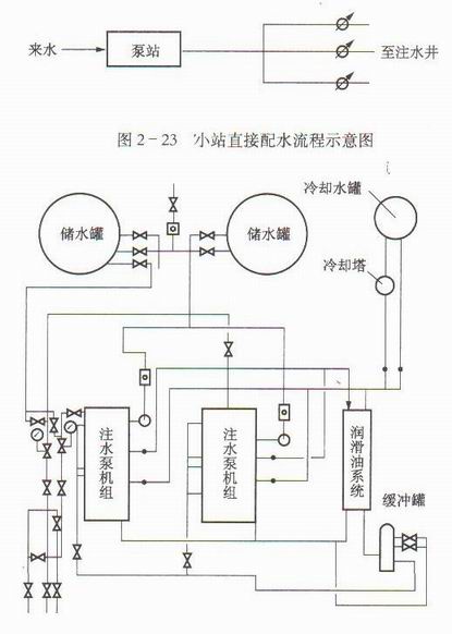 注水站是由儲(chǔ)水罐、供水管網(wǎng)、注水泵房、泵機(jī)組,高低壓閥組、供電配電、