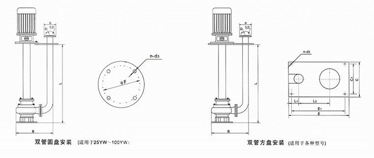 9.泵有單管安裝和雙管安裝兩種,支承件有圓盤和方盤安裝。