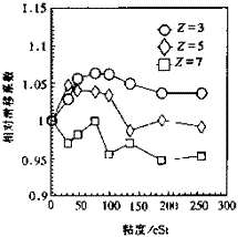 圖4 滑移系數(shù)隨粘度的變化圖 5 相對滑移系數(shù)隨 粘度的變化