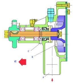 A-進水口 B-水泵內(nèi)腔 C-泄水孔