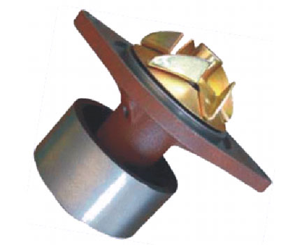水泵的作用是對冷卻液加壓,保證其在冷卻系統(tǒng)中循環(huán)流動。汽車發(fā)動機廣泛采用離心式水泵。當水泵葉輪旋轉(zhuǎn)時,水泵中的冷卻液被葉輪帶動一起旋轉(zhuǎn),并在離心力的作用下被甩向水泵殼體的邊緣,同時產(chǎn)生一定的壓力,然后從出水管流出。在葉輪的中心處由于冷卻液被甩出而壓力下降,散熱器中的冷卻液在水泵進口與葉輪中心的壓差作用下經(jīng)進水管流入葉輪中心。葉輪由鑄鐵或塑料制造,葉輪上通常有6-8個徑向直葉片或后彎葉片。水泵殼體由鑄鐵或鋁鑄制,進、出水管與水泵殼體鑄成一體。