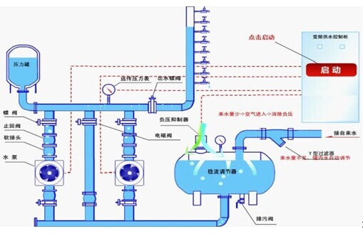 因此,在領(lǐng)域中“無負(fù)壓”是指利用科學(xué)的技術(shù)和措施,消除水泵運(yùn)行時(shí)對(duì)其直接串接的供水管網(wǎng)的影響,不使其供水管網(wǎng)產(chǎn)生負(fù)壓,不影響附近用戶的用水,不污染水質(zhì),從而保護(hù)了與供水管網(wǎng)直接串接的供水安全和水質(zhì)衛(wèi)生。
