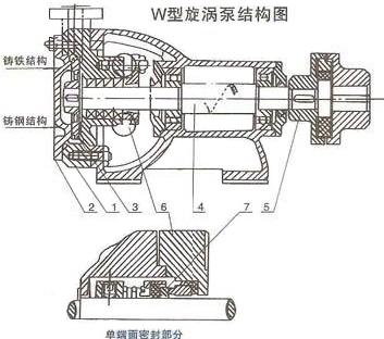 單級旋渦泵1W型結(jié)構(gòu)圖:
