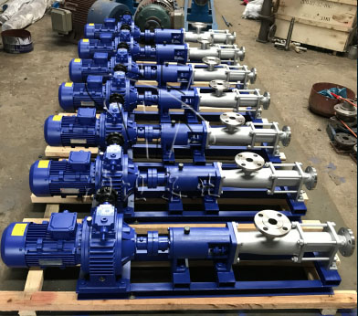 G型帶減速機螺桿泵由于該二部件的特殊幾何形狀,分別形成單獨的密封容腔,介質(zhì)由軸向均勻推行流動,內(nèi)部流速低,容積保持不變,壓力穩(wěn)定,因而不會產(chǎn)生渦流和攪動。帶減速機螺桿泵每級泵的輸出壓力為0.6MPa,揚程60m(清水),自吸高度一般在6m,適用于輸送介質(zhì)溫度80℃以下(特殊要求可達150℃)。