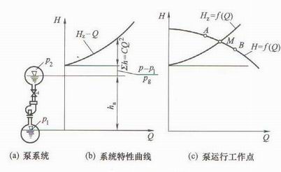 系統(tǒng)特性曲線也稱管路情況一定,即管路吸入排出液面的壓力、輸液高度、管路長度、管徑、管件數(shù)目與尺寸,以及閥門開啟度等都已給定的情況下,單位重量液體流經(jīng)該系統(tǒng)時需由外界給予的能量(及系統(tǒng)揚程Ηz)與流量Q之間的關(guān)系曲線。.jpg)