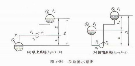 泵系統(tǒng)是泵及其附件、吸入管路、排出管路、吸液灌、拍液灌的總稱。系統(tǒng)揚程指把單位重量的液體從吸入液體面輸送到排出液面所需要的能量,常用符號Η2 表示,單位為m。
